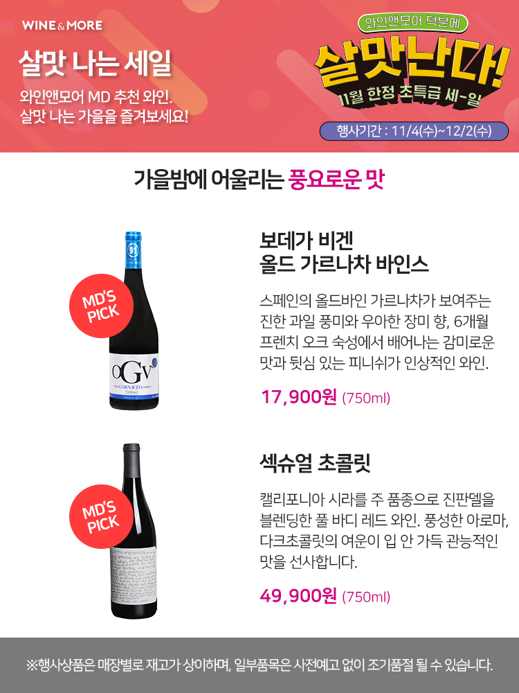 와인앤모어 2020 11월 프로모션 (2020. 11. 4. ~ 12. 2.)